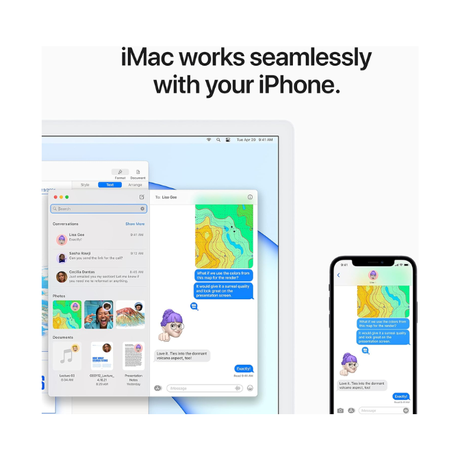 The iMac also offers a superior visual experience with True Tone Technology, which adjusts the display for more natural colors and reduced eye strain. Enjoy HD video calls with its high-resolution built-in camera, while studio-quality microphones and speakers enhance both communication and entertainment.