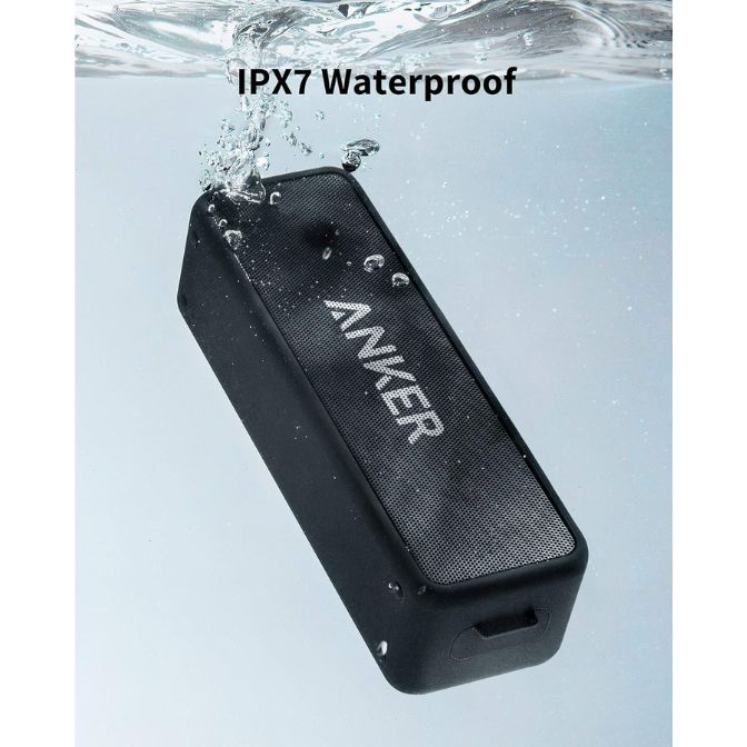The Anker SoundCore speaker delivers 12W of powerful audio with deep bass, thanks to dual neodymium drivers and BassUp technology. It's IPX7 waterproof and dustproof, perfect for outdoor use. Enjoy up to 24 hours of music with the 5,200mAh battery. The custom case fits the speaker and stores cables neatly.