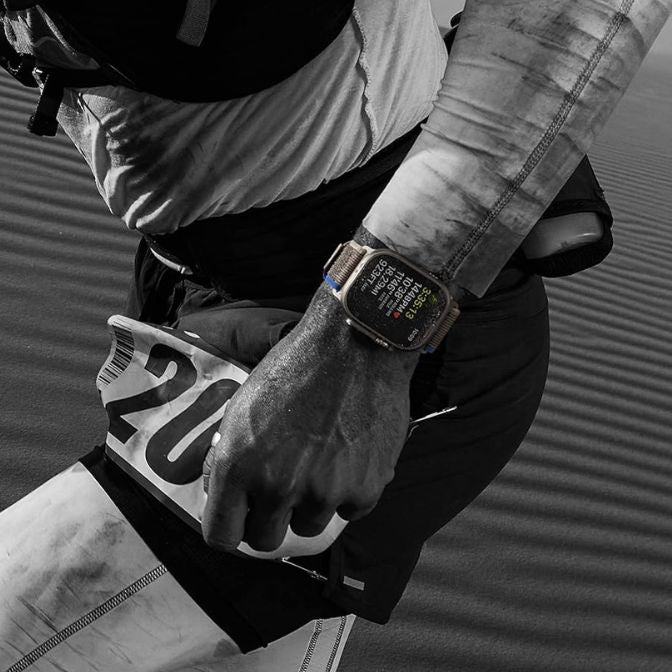 Rugged Design: Corrosion-resistant titanium case, 100m water resistance, customizable Action button.