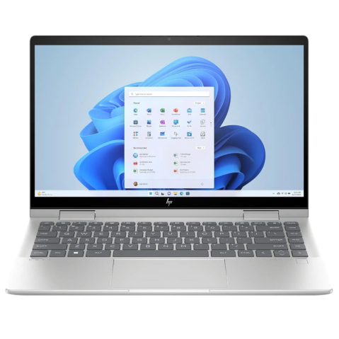 The HP Envy x360 2-in-1 14 is a sleek and versatile laptop featuring a 14-inch Full HD IPS touchscreen display with edge-to-edge glass, thin bezels, and vibrant visuals. Powered by an Intel Core i5-120U 10-core processor with Intel Graphics, it offers strong performance for everyday multitasking and creative tasks. This model includes 8GB of DDR4 RAM and a 512GB PCIe NVMe SSD for fast, reliable storage. It runs on Windows 11 Home and comes in Natural Silver with premium features like a backlit keyboard, fingerprint reader, and HP True Vision 5MP camera with privacy shutter. Connectivity options include Wi-Fi 6E, Bluetooth 5.3, USB-C with power delivery and DisplayPort 1.4, two USB 3.2 ports, HDMI 2.1, and a headphone/microphone combo jack. The device is lightweight at 3.35 lbs, has a battery life of up to 6 hours, and includes a 32GB USB drive and a 65W AC adapter.